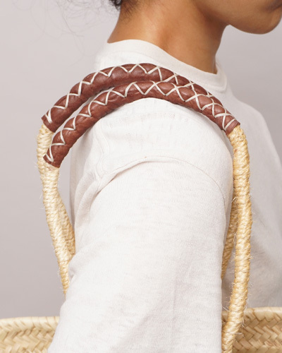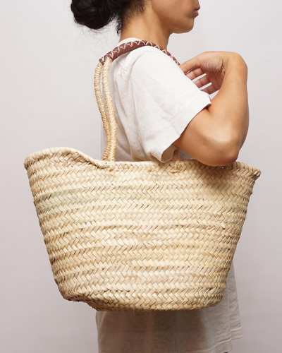 (モロッコ) マルシェバスケット ブラウンレザーハンドル (M)