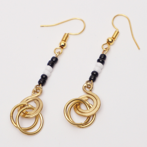 (ケニア)  真鍮ダブルリング&ビーズ ピアス No.600-56