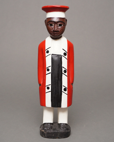 コロン人形はコートジボワールの植民地時代に西洋からさまざまな職業やスポーツ、ファッションなどが伝えられ、それを模して作られた木彫りの人形です。