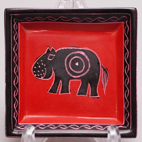 柔らかく加工しやすい石を削って作られた動物柄の角皿です。