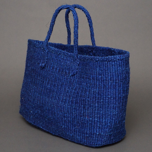 ケニア サイザルバッグ ワイド Lサイズ (ブルー)