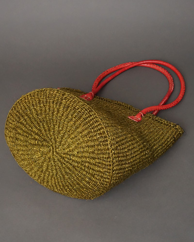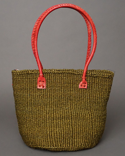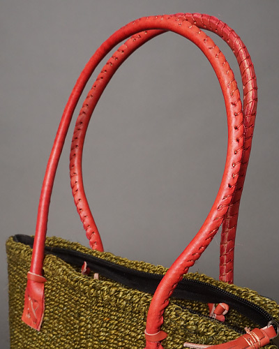 ケニア サイザルジッパーバッグ ロングハンドル 10インチ (カーキグリーン)