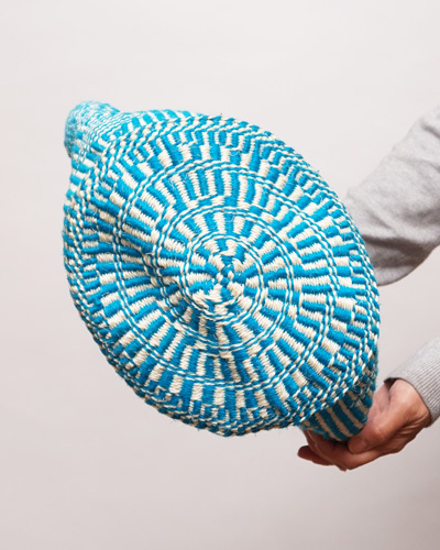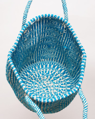 (ケニア) サイザルバッグ アクリル柄編み 10インチ (ホワイト x スカイブルー) No.4