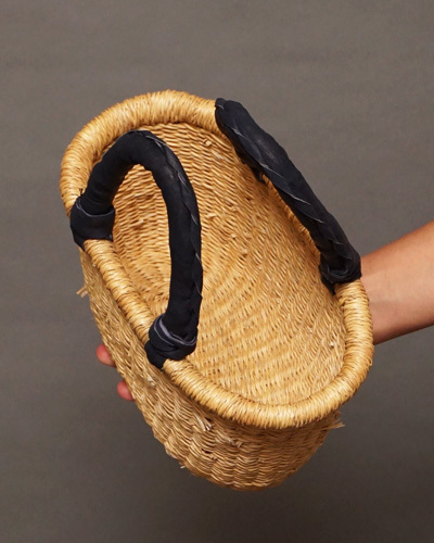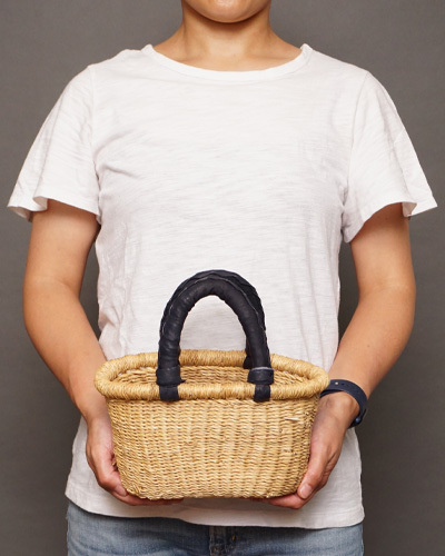 (ブルキナファソ) 楕円マルシェバスケット ブラックレザー 無地 (S) No.6