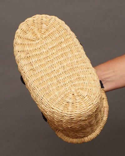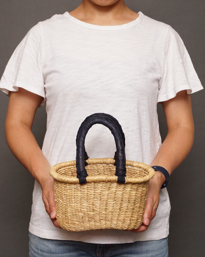 (ブルキナファソ) 楕円マルシェバスケット ブラックレザー 無地 (S) No.7