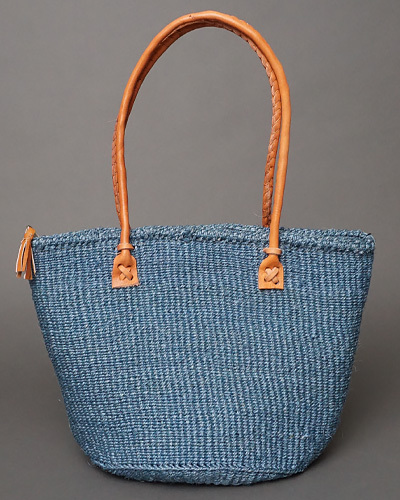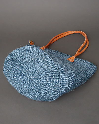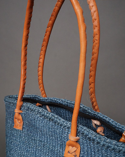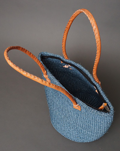 ケニア サイザルジッパーバッグ ロングハンドル 10インチ (アッシュブルー)