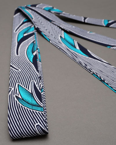 ナイロンベルトにアフリカンワックスで化粧をしたジェンベストラップです。