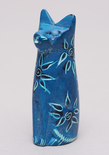 柔らかく加工しやすい石を削って作られた猫の置物です。