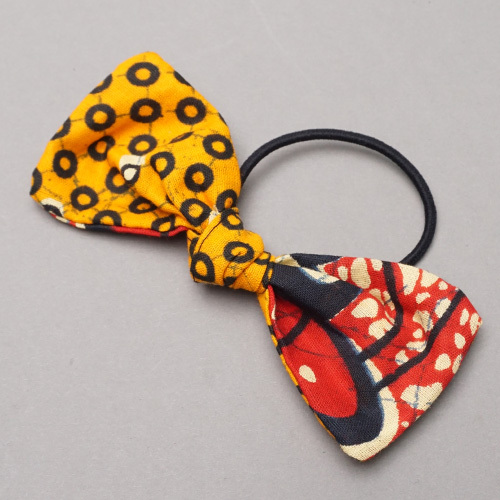 何気なくアフリカを身に着けられるアフリカンワックス(パーニュ)のヘアゴムリボンです。