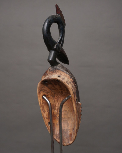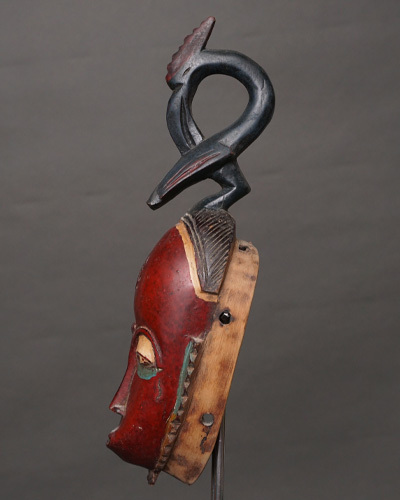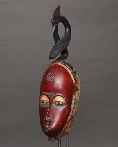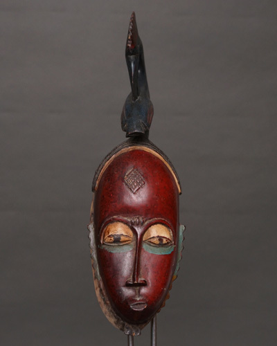 バウレ族は西アフリカの民族の一つで、特に精巧で美しい木彫りの彫刻で知られています。仮面はバウレ族の文化や宗教的儀式に深く根付いており、芸術性と象徴性が高いものです。