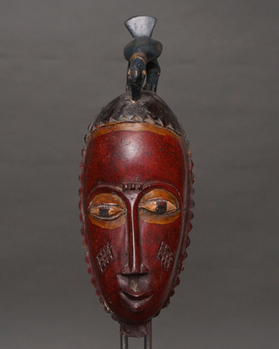 バウレ族は西アフリカの民族の一つで、特に精巧で美しい木彫りの彫刻で知られています。仮面はバウレ族の文化や宗教的儀式に深く根付いており、芸術性と象徴性が高いものです。
