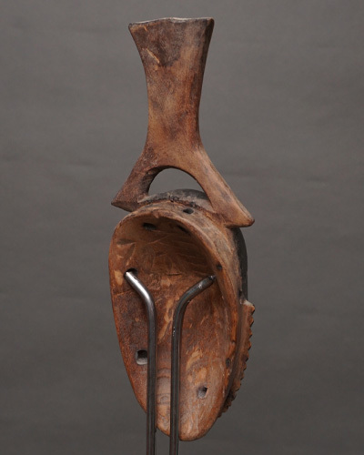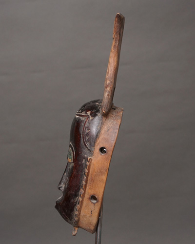 バウレ族は西アフリカの民族の一つで、特に精巧で美しい木彫りの彫刻で知られています。仮面はバウレ族の文化や宗教的儀式に深く根付いており、芸術性と象徴性が高いものです。