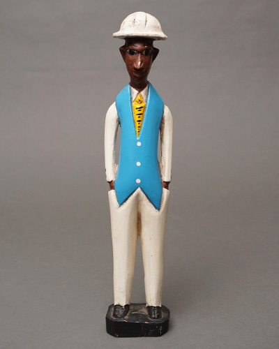 コロン人形はコートジボワールの植民地時代に西洋からさまざまな職業やスポーツ、ファッションなどが伝えられ、それを模して作られた木彫りの人形です。