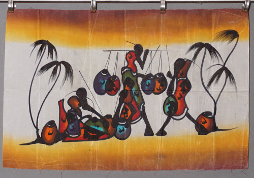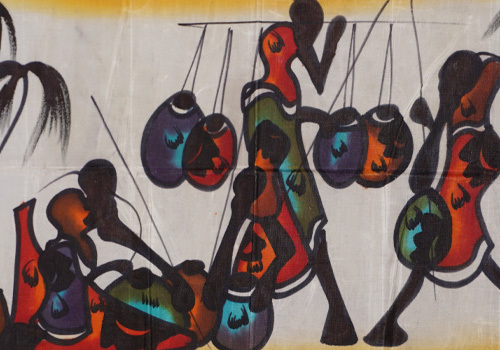 布の上に熱で溶かした蜜蝋を塗り、独特なテクスチャーを作り出しています。