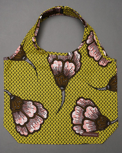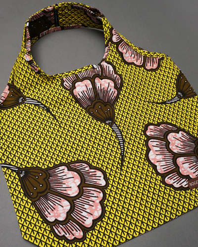 西アフリカのアフリカンワックス(パーニュ)を使用し当店で一つずつ丁寧に縫製しました。