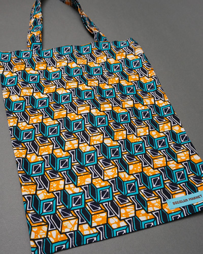 マリ共和国のアフリカンワックスを使用し、当店で一つずつ丁寧に縫製しました。