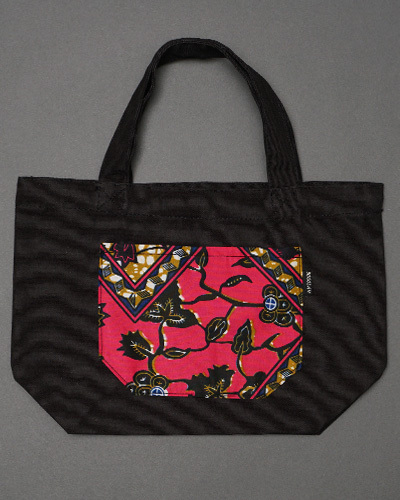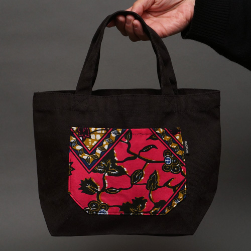 丈夫なキャンバス生地にアフリカンワックスのポケットが付いた可愛いトートバッグです。