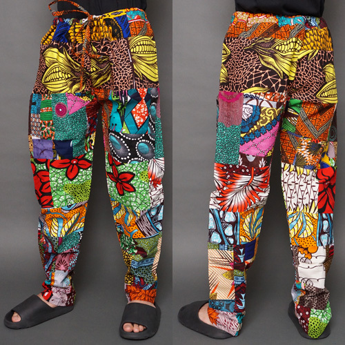 コットンのアフリカンワックス(パーニュ)を使用したブルキナファソのパッチワークパンツです。