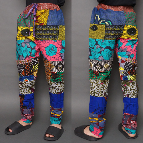 コットンのアフリカンワックス(パーニュ)を使用したブルキナファソのパッチワークパンツです。
