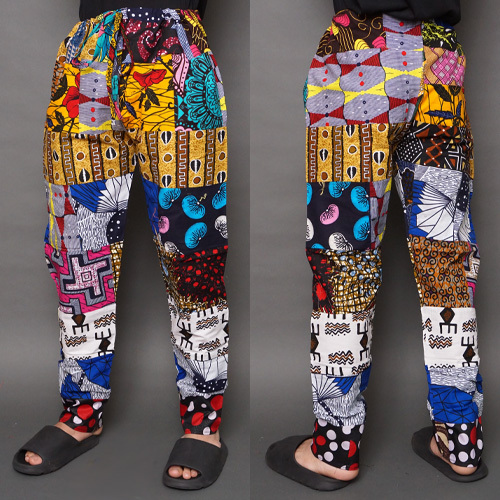 コットンのアフリカンワックス(パーニュ)を使用したブルキナファソのパッチワークパンツです。