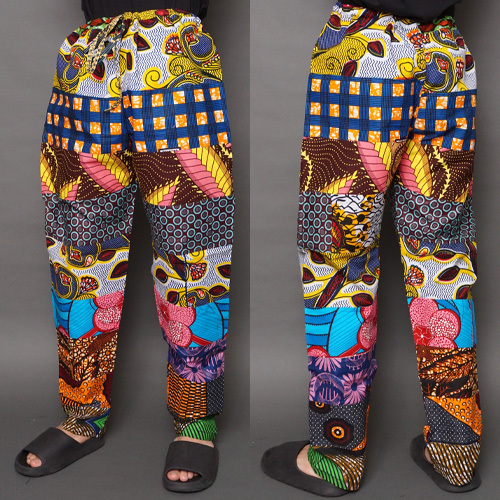 コットンのアフリカンワックス(パーニュ)を使用したブルキナファソのパッチワークパンツです。