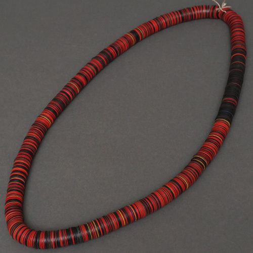 西アフリカで実際に使用されていた、古いレコード盤をリサイクルして作られたアンティークビーズです。素材は主にプラスチック(PVC)で、円盤型のユニークなフォルムが特徴。