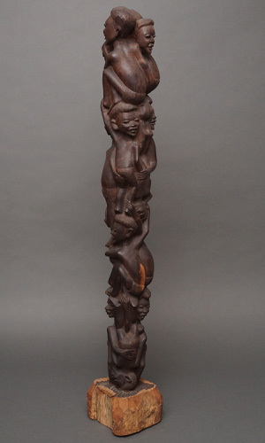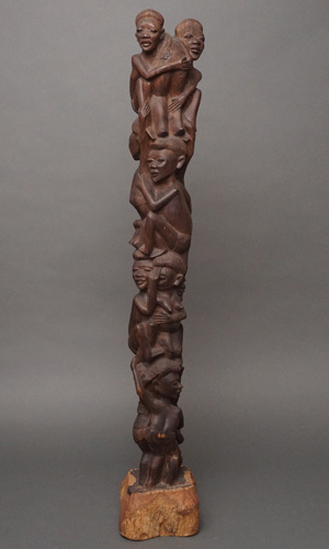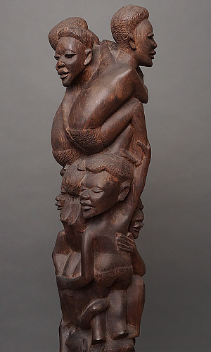 伝統的な彫刻技法とアフリカ社会の絆を象徴する造形は、温もりと力強さを感じさせます。