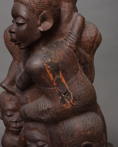 伝統的な彫刻技法とアフリカ社会の絆を象徴する造形は、温もりと力強さを感じさせます。