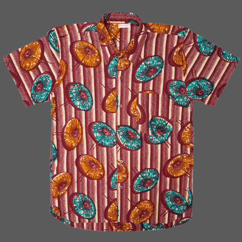 (マリ) アフリカンワックス シャツ 半袖 Sサイズ No.3