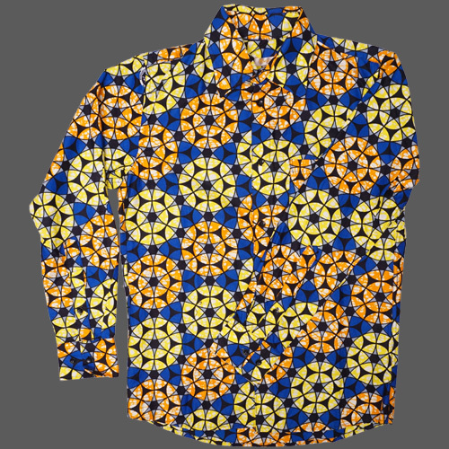 (マリ) アフリカンワックス シャツ 長袖 Sサイズ No.2
