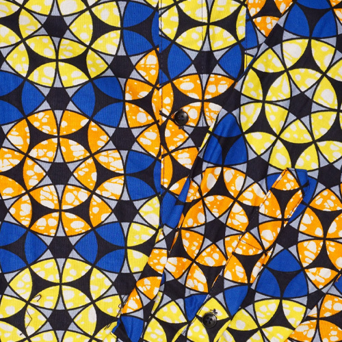 マリで作られたアフリカンワックスの半袖シャツです。