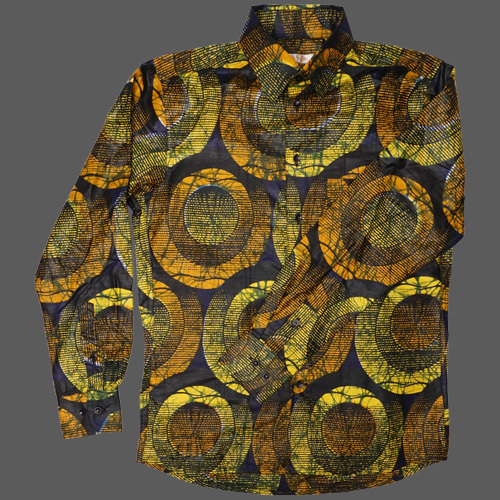 (マリ) アフリカンワックス シャツ 長袖 Sサイズ No.5
