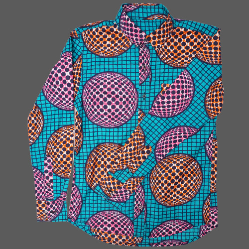 (マリ) アフリカンワックス シャツ 長袖 Sサイズ No.6