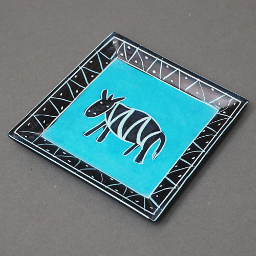 ケニアの職人がひとつひとつ手彫り・手描きで仕上げた、温かみのあるソープストーンの角皿です。
