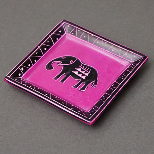 ケニアの職人がひとつひとつ手彫り・手描きで仕上げた、温かみのあるソープストーンの角皿です。