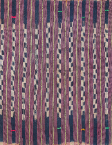 コートジボワールのバウレ族が実際に暮らしの中で身にまとっていた味わい深い手織り布です。