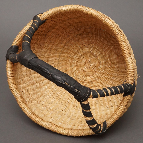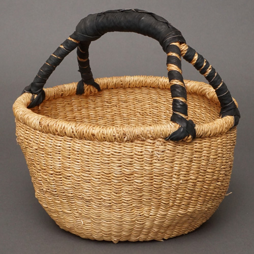 (ブルキナファソ) 半球マルシェバスケット ブラックレザー 無地 (S) No.10