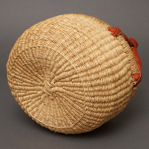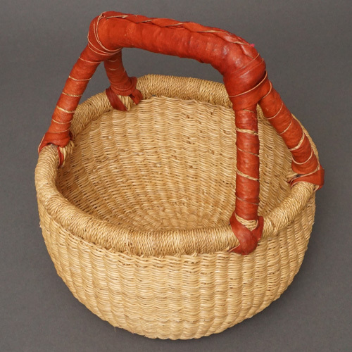 茶色革ハンドルの半球型バスケットです。