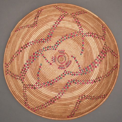 ブルキナファソで丁寧に編まれた平らな皿型のカゴ。