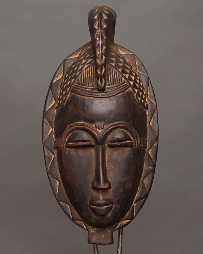 威圧感ではなく優美さを重んじるこの仮面は、バウレ族の美意識と精神性をよく映し出した作品です。