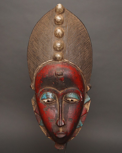 村の祝祭や儀礼で使用され、観る人々を楽しませるとともに、若い花嫁や家庭を悪意から守る霊的な存在としての役割も担う、グロ族の信仰と美意識を映した仮面です。