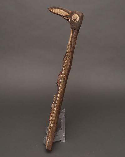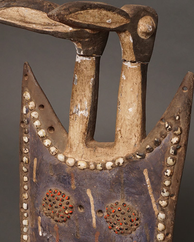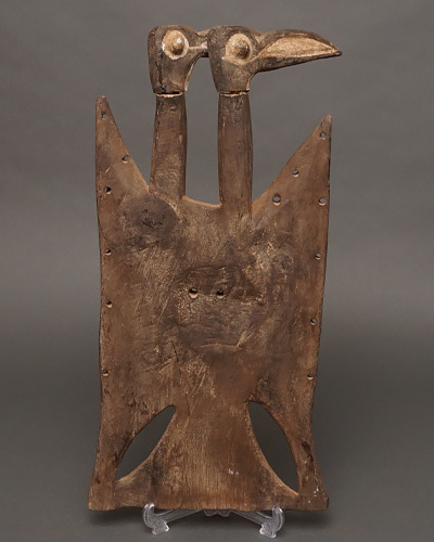 ブルキナファソのトゥシャン族による板状の仮面で、鳥をかたどった姿が印象的です。