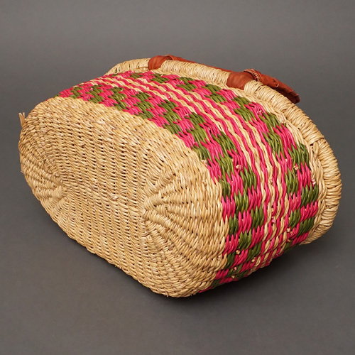 楕円形の底とレザー巻きの持ち手がポイント。