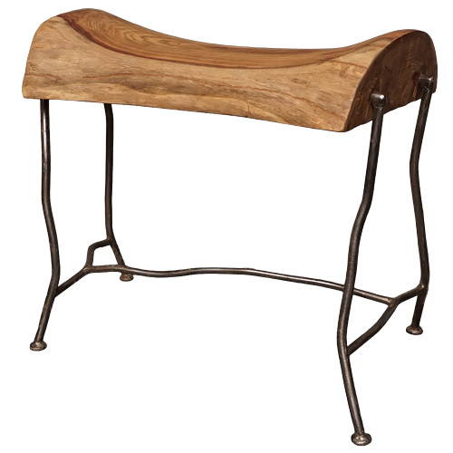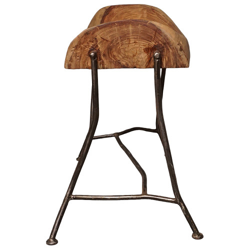 座面には無垢の木材が使われ、温もりある質感がアイアンの冷ややかな輝きと美しく調和しています。