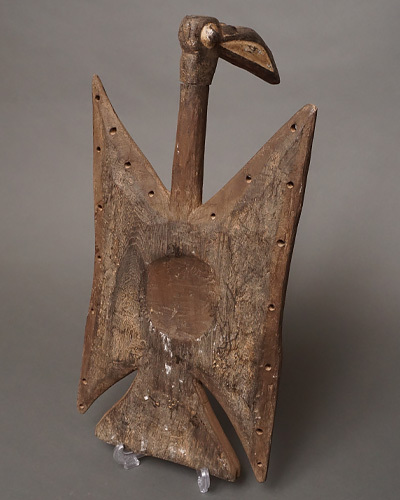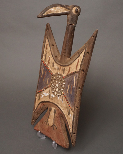 ブルキナファソのトゥシャン族による板状の仮面で、鳥をかたどった姿が印象的です。