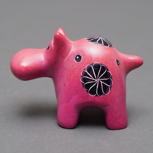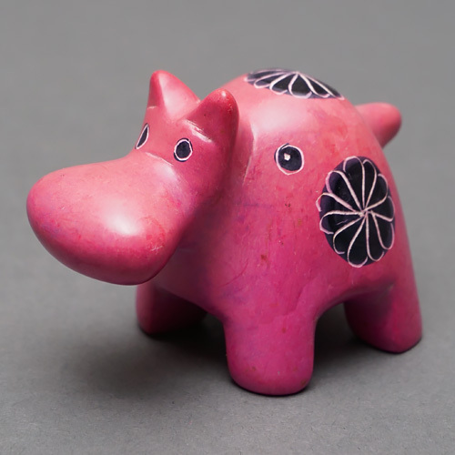 柔らかく加工しやすい石を削って作られた丸りとしたカバの置物です。