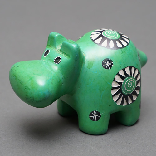 柔らかく加工しやすい石を削って作られた丸りとしたカバの置物です。
