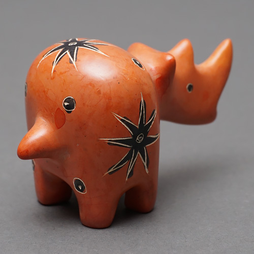柔らかく加工しやすい石を削って作られた丸りとしたサイの置物です。