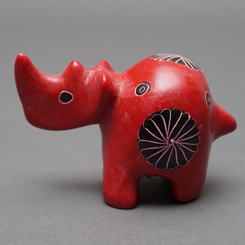 柔らかく加工しやすい石を削って作られた丸りとしたサイの置物です。