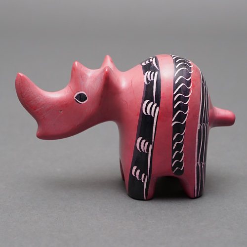 柔らかく加工しやすい石を削って作られた丸りとしたサイの置物です。